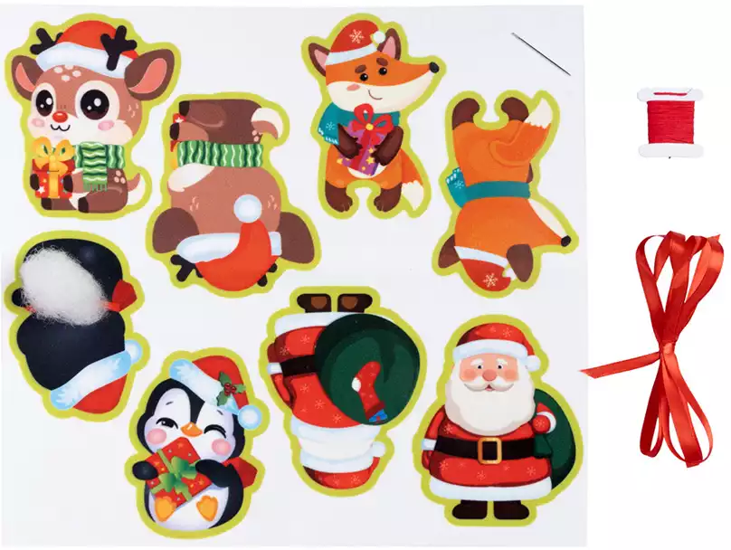 В корзинуНабор для детского творчества Ёлочные игрушки 4 шт – это отличная идея подарка на Новый год. С помощью этого набора ребенок сможет самостоятельно изготовить четыре елочные игрушки из ткани. Очаровательная мягкая игрушка станет приятным подарком для ваших близких. Создание игрушки своими руками способствует воспитанию усидчивости, развитию фантазии, творческого мышления, мелкой моторики и навыков шитья. Состав набора: заготовки для 4 фигурок из ткани (высота 10 см); металлическая игла – 1 шт.; наполнитель; нитки; лента красного цвета; иллюстрированная пошаговая инструкция.