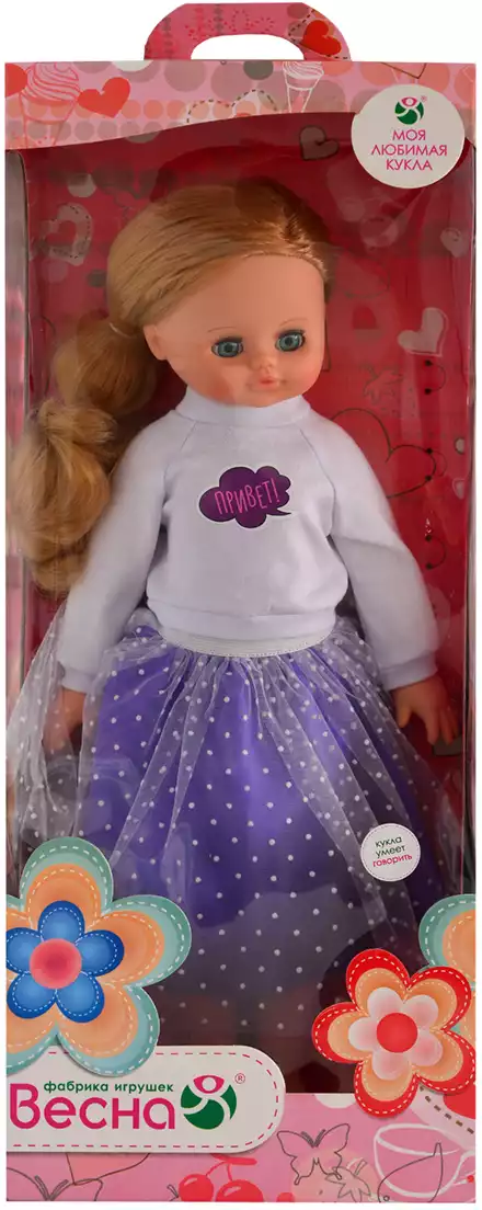 - Рост куклы 55 см. Кукла озвучена. Глаза вставные закрывающиеся. Цвет глаз может варьироваться. Тело куклы пропорционально. Ручки и голова выполнены из эластичного, приятного на ощупь винила, а туловище и ноги из пластмассы.